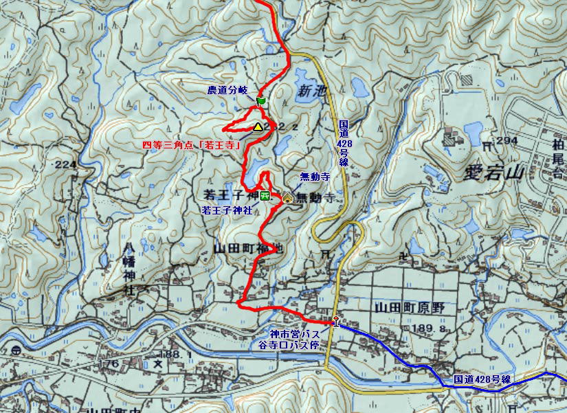この図は、地図ソフト「カシミール3D」を使用し、ガーミンGPSの軌跡データを取り込み作成した地図に、画像編集ソフト「Photoshop」で説明を追加したものです。